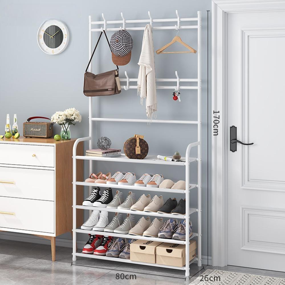 رف معدني متعدد الاستخدامات للأحذية والملابس مع خطافات لتعليق الحقائب والقبعات