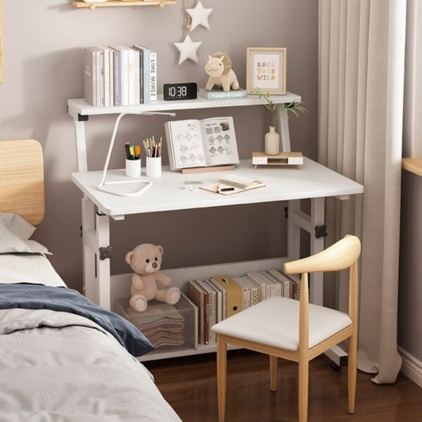 مكتب كمبيوتر أنيق وعصري مع رفوف تخزين متعددة، مثالي للدراسة والعمل. يتميز بسطح واسع، رف علوي للكتب والإكسسوارات، ورف سفلي للأدوات. قابل لتعديل الارتفاع 60-85 سم لراحة جلوس مثالية، مصنوع من خامات متينة وسهل التركيب، مناسب لغرف النوم والمكاتب الصغيرة.
