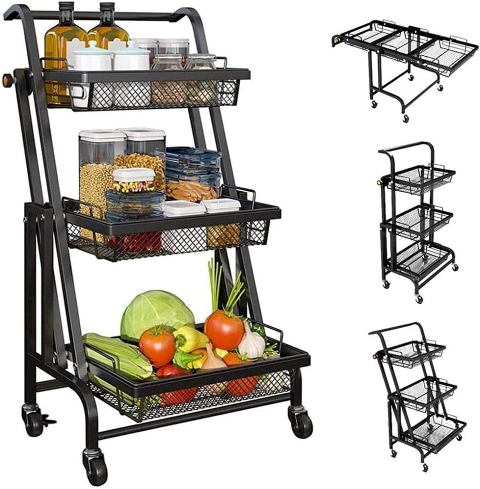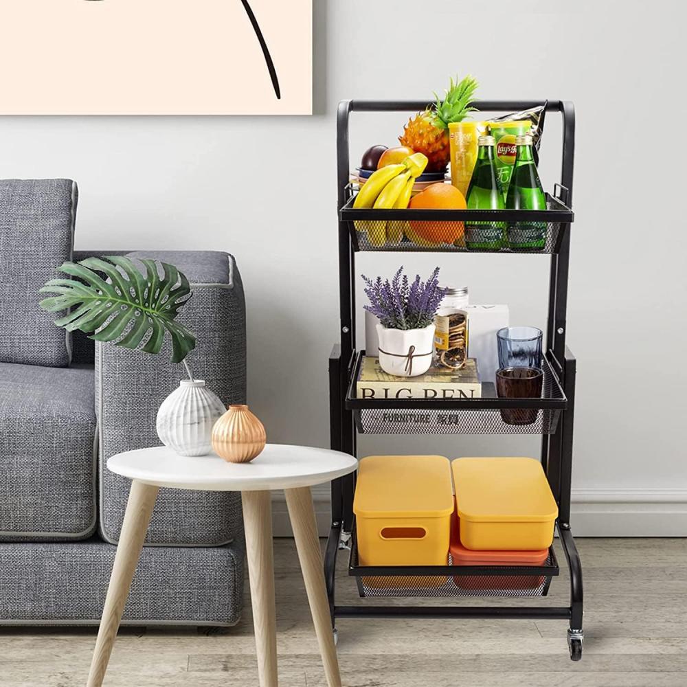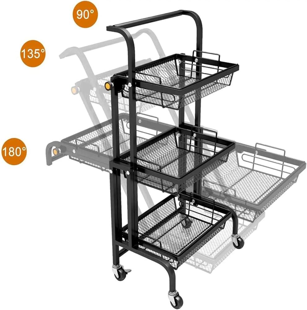 عربة تخزين متعددة الاستخدامات بثلاثة مستويات مع عجلات متحركة قابلة للطي