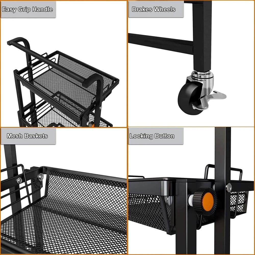 • المواد: إطار معدني متين مع سلال شبكية لتوفير تهوية جيدة وسهولة في التنظيم.